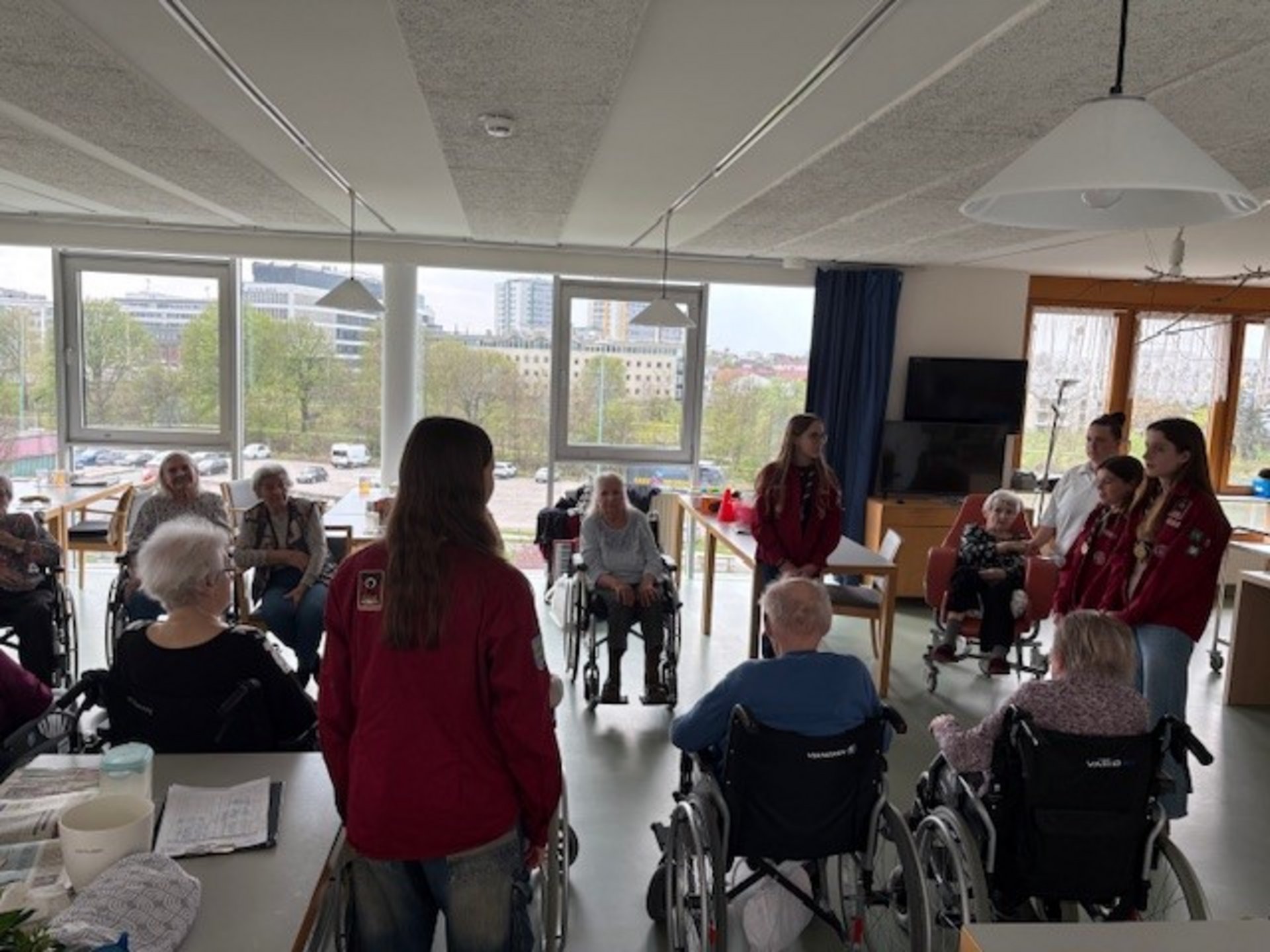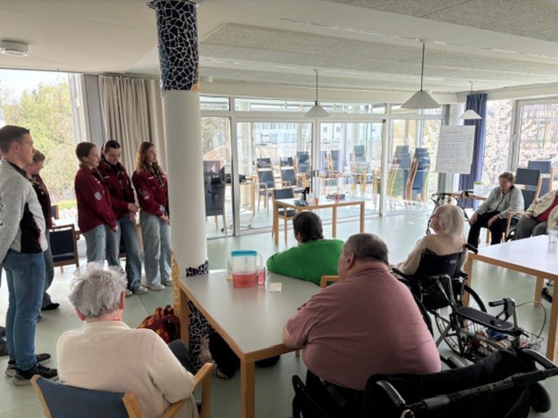 Am 16.4.2026 besuchten die Caravelles/Explorer (Jugendliche zwischen 13 und 16 Jahren) der Pfadfindergruppe Böheimkirchen unsere Bewohner*innen und brachten ein wenig Lagerstimmung mit. Mit typischen Pfadfinderrufen und Liedern, sorgten die Jugendlichen für Unterhaltung und Abwechslung. Als Dank gab es im Anschluss Kuchen und Kaffee für die Jugend!