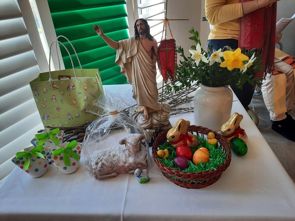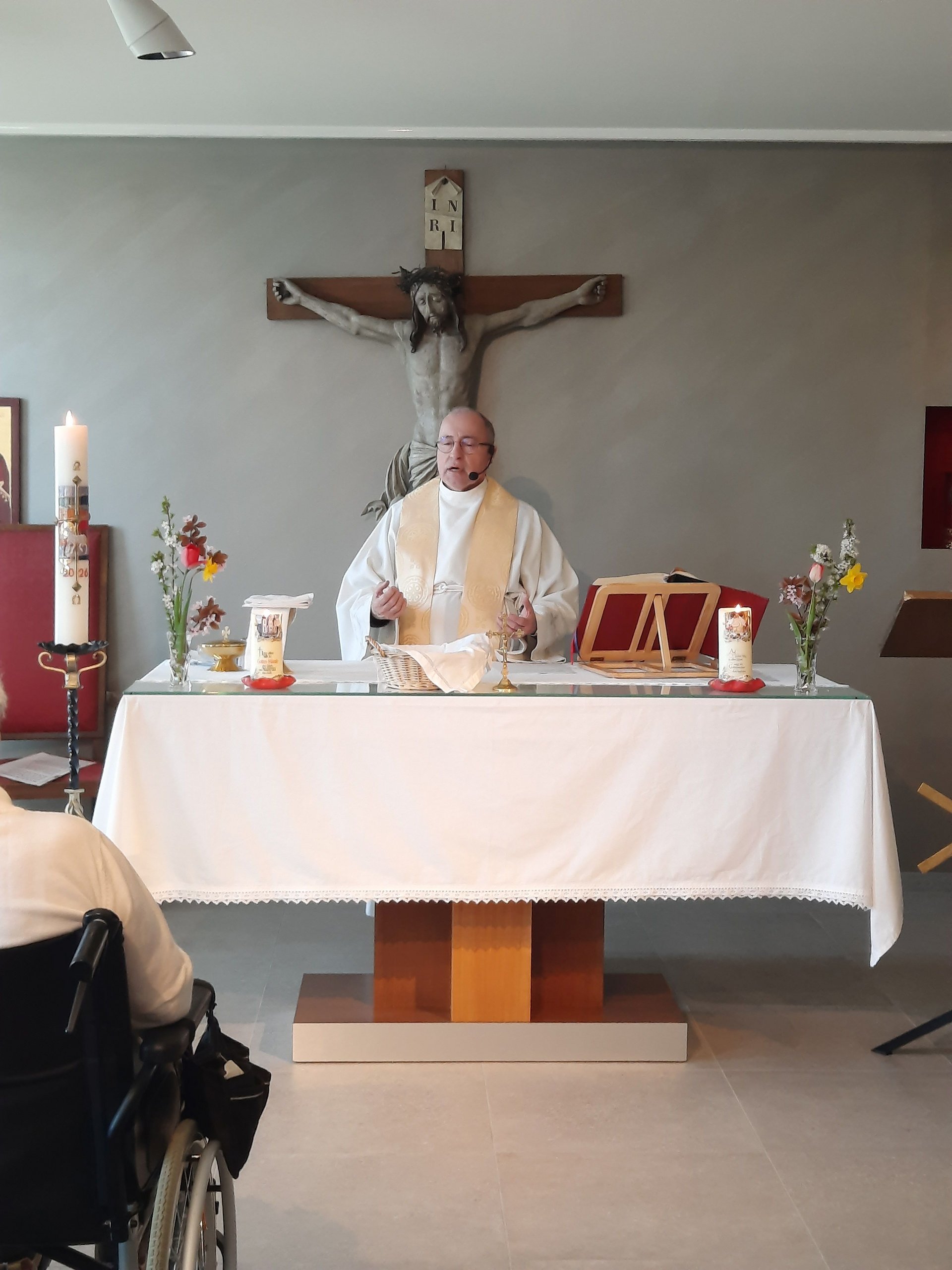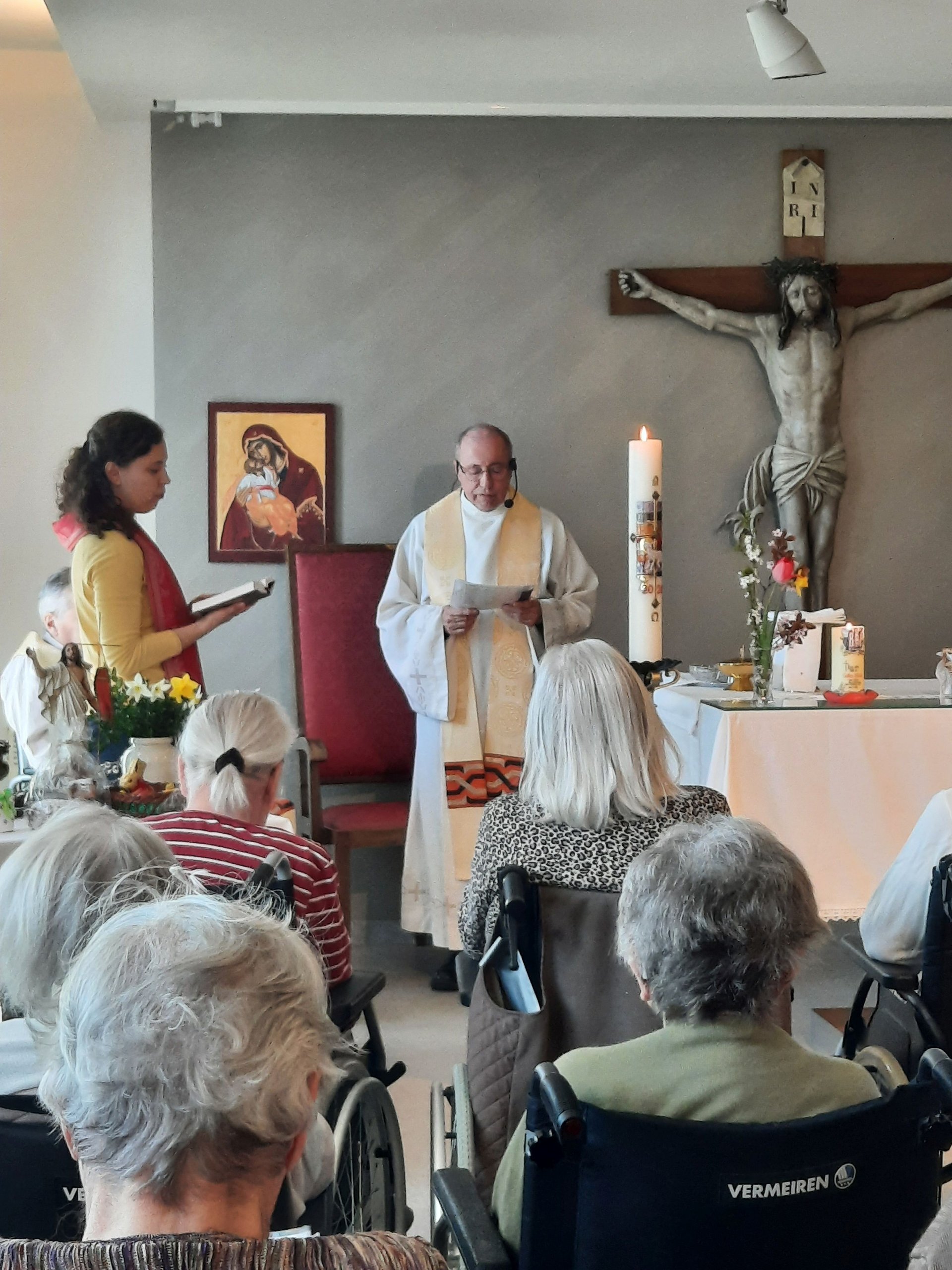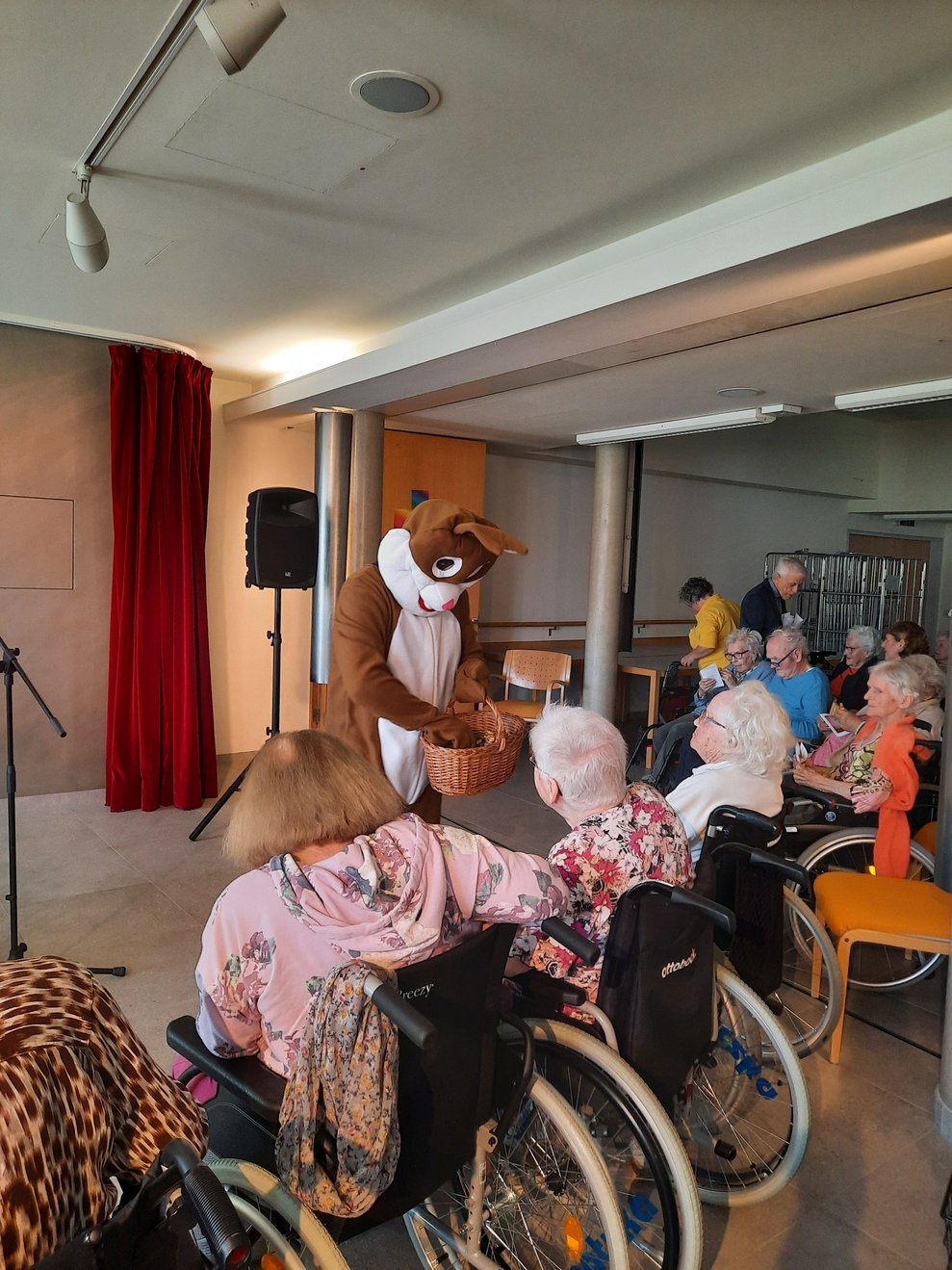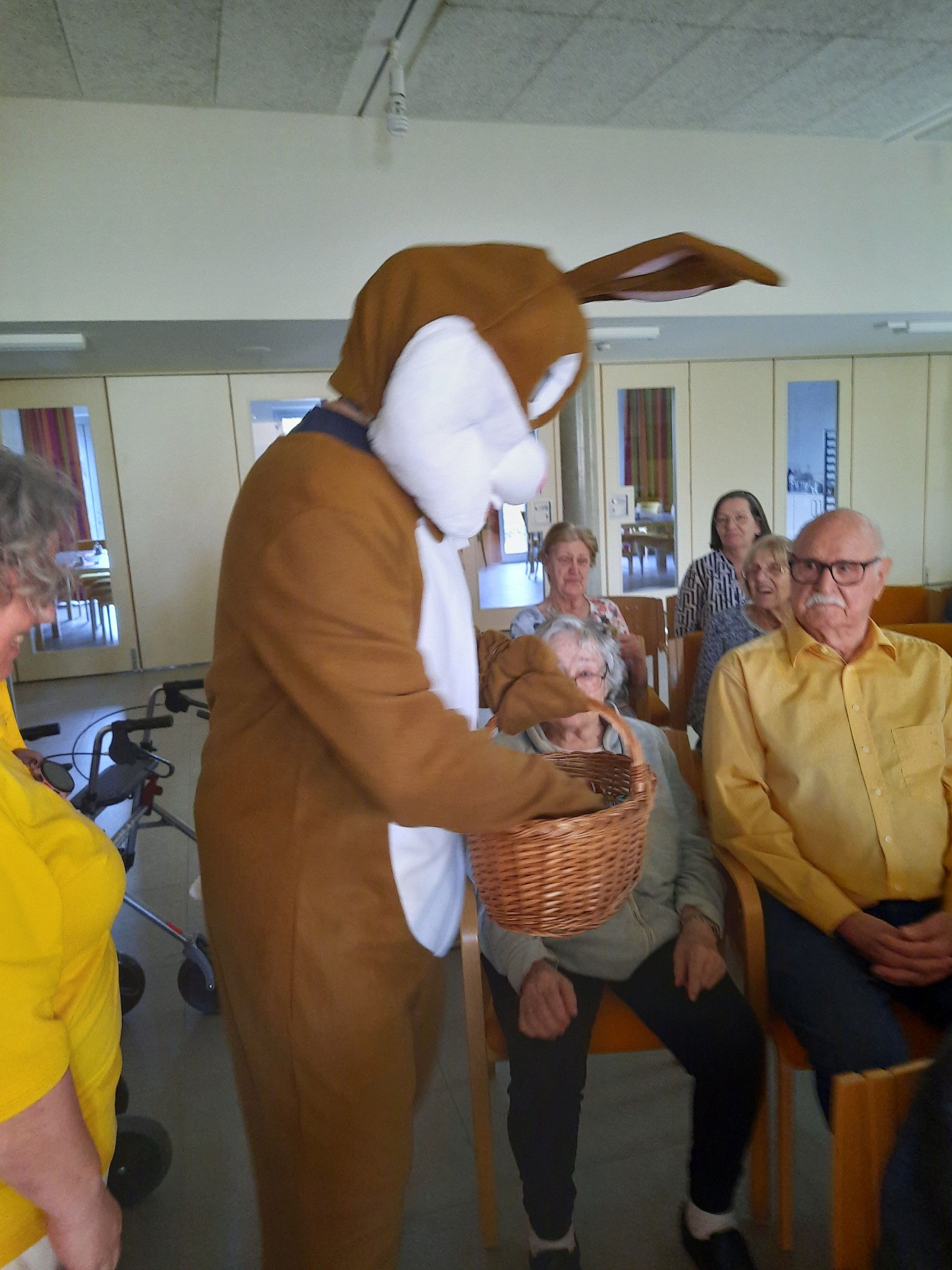 Am 07. April 2026 feierten wir gemeinsam die Ostermesse im Veranstaltungsbereich. Organisiert wurde die Messe von Seelsorgerin Mag. Stephanie Dorner gemeinsam mit ehrenamtlichen Kolleg*innen. Wir danken Priester Herrn DDr. Reinhard Knittel für die Abhaltung der Messe. Nach der Ostermesse besuchte der Osterhase unser Haus und verteilt Schokolade an alle Mitarbeiterinnen und Mitarbeiter sowie Bewohnerinnen und Bewohner. Danke lieber Osterhase für deinen Besuch. Am Nachmittag gab es für alle Bewohnerinnen als Osterjause eine Osterpinze mit Osterei aus der Küche.